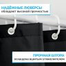 Вместе с этим тканевая штора для ванны обладает высокой прочностью и в нее вшиты утяжелители для того, чтобы этот предмет хорошо висел на штанге карниза. Также здесь предусмотрены люверсы под кольца для шторки.